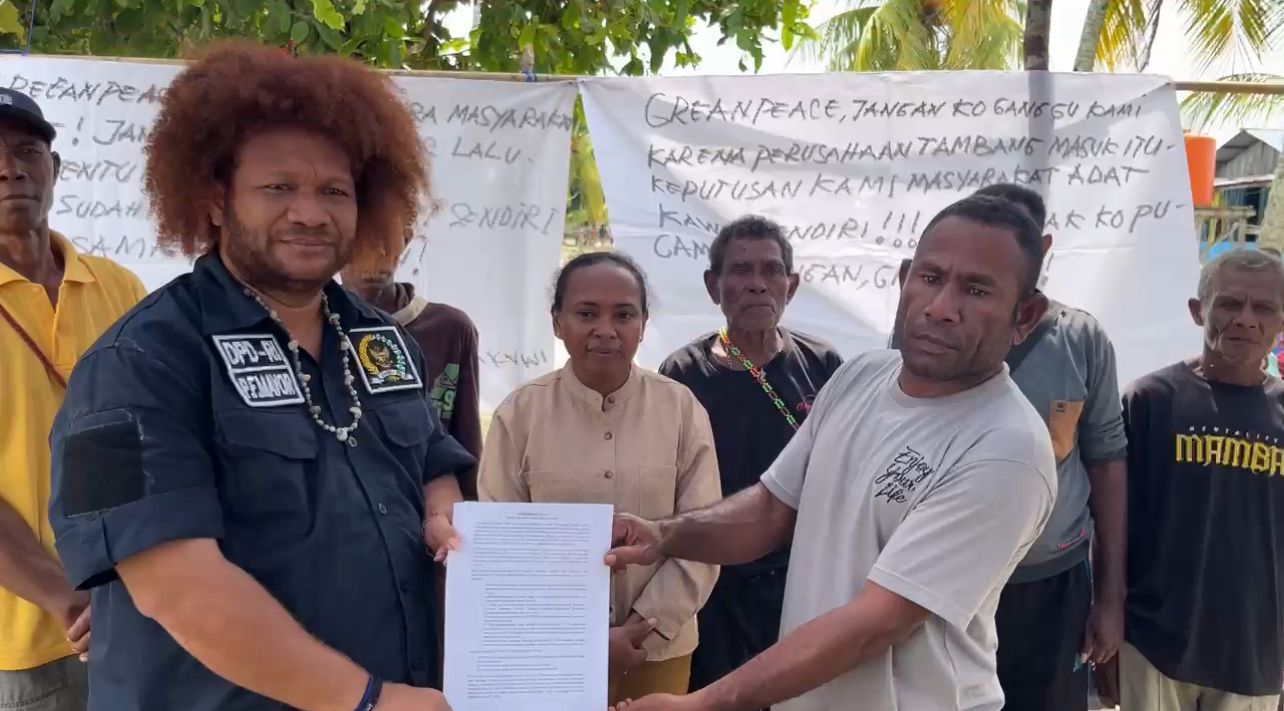 Desakan Masyarakat Adat Suku Kawei dituangkan dalam pernyataan sikap dan kemudian diserahkan kepada Senator PFM untuk diperjuangkan hingga ke tingkat pusat.